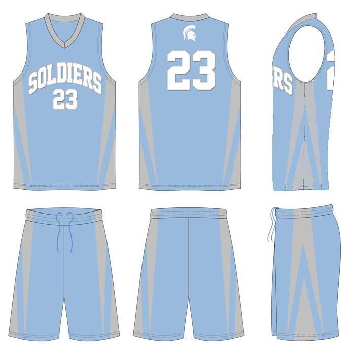 This custom uniform kit SAC506 is custom made to the specification of Coach Lorenzo Polite for the Soldiers Basketball program.