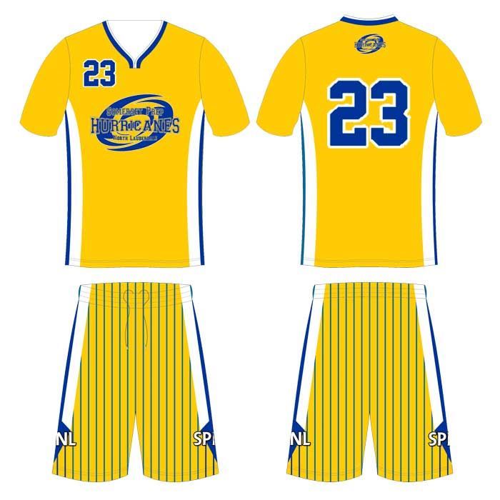 This fully sublimated basketball uniform is made for the Somerset Prep Hurricanes of North Lauderdale, Florida. Satisfaction is guaranteed!