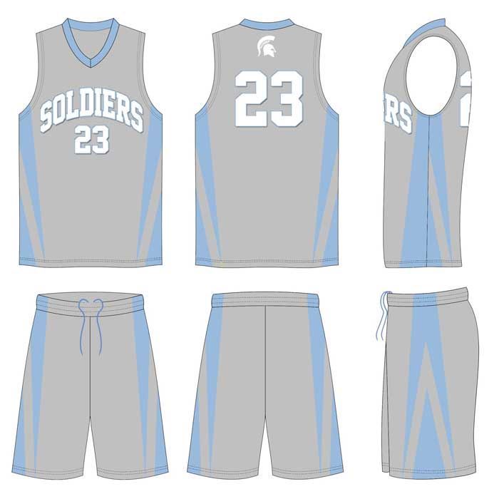 This custom uniform kit SAC506 is custom made to the specification of Coach Lorenzo Polite for the Soldiers Basketball program.