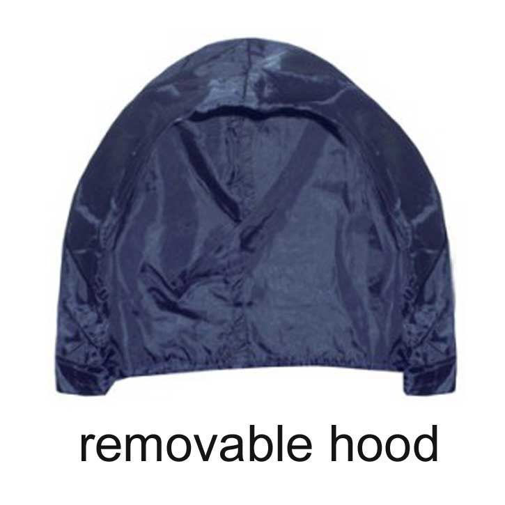 ◊ full front zipper, removable hood and set in sleeves